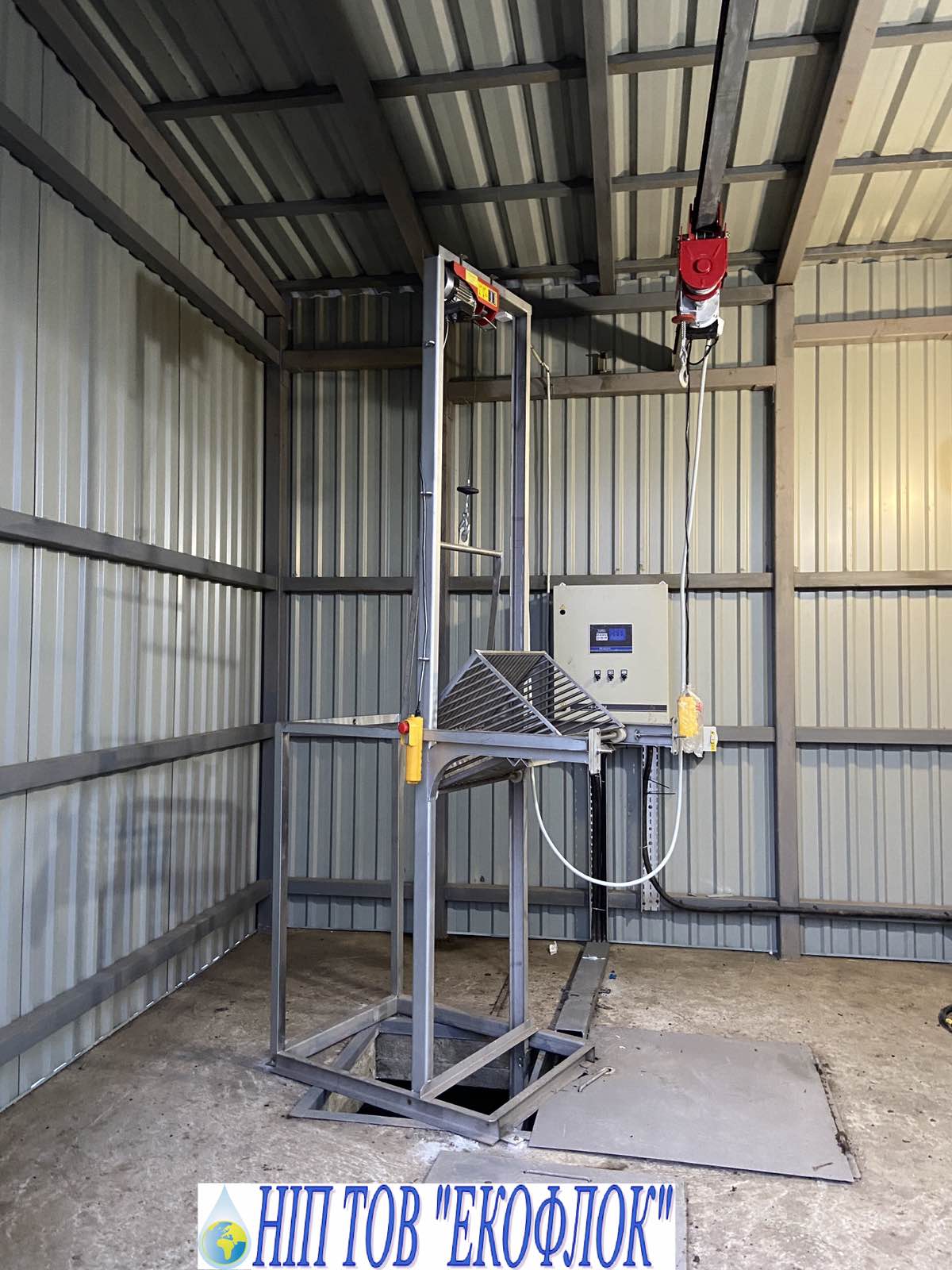 На вводе подводящей трубы канализационной насосной станции устанавливается корзина для крупных фракций мусора, выполненная из полипропилена. Для опорожнения корзина имеет возможность подъема наверх по специальным направляющим.