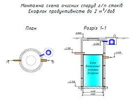 Очистные сооружения разработаны НИП ООО «Экофлок» с использованием технологии глубинно-напорной аэрации разрешенной к использованию Минздрава Украины (заключение госсанэпидэкспертизы от 01.02.2008 г. №05.03 .02-04/4854) имеют большую окислительную возможность высокой пропускной способности и достичь необходимого качества очистки хозяйственно-бытовых стоков, в данных очистных сооружениях используется энергосберегающее насосное, компресорное и технологическое оборудование мировых лидеров, имеющих разрешения Украины.